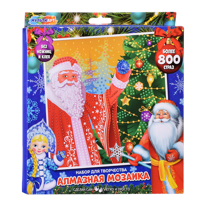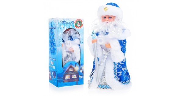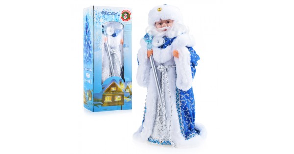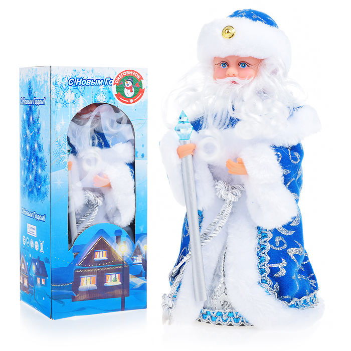 Дедушка Мороз с посохом в синей шубе, музыкальный 40см в коробке