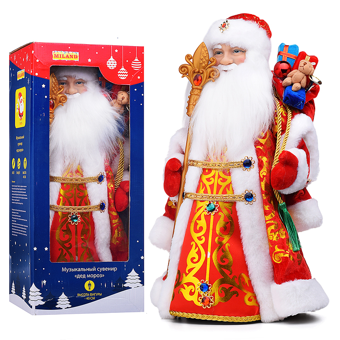 Сувенир музыкальный "Дед Мороз в красной шубе с мешком и посохом,с мелодией, 50см