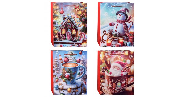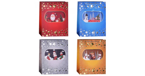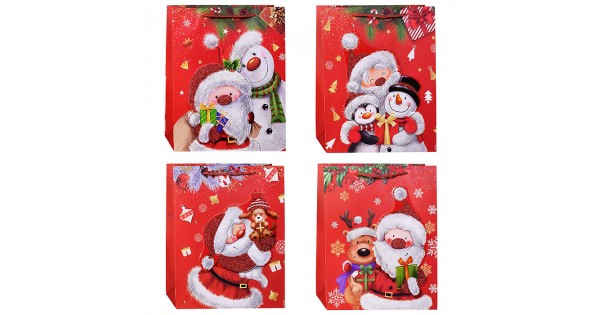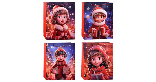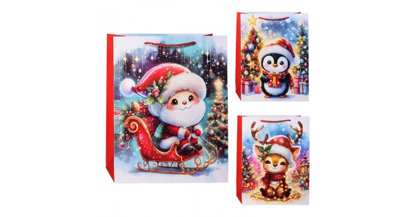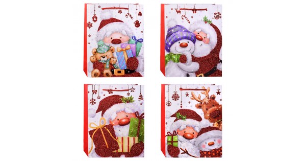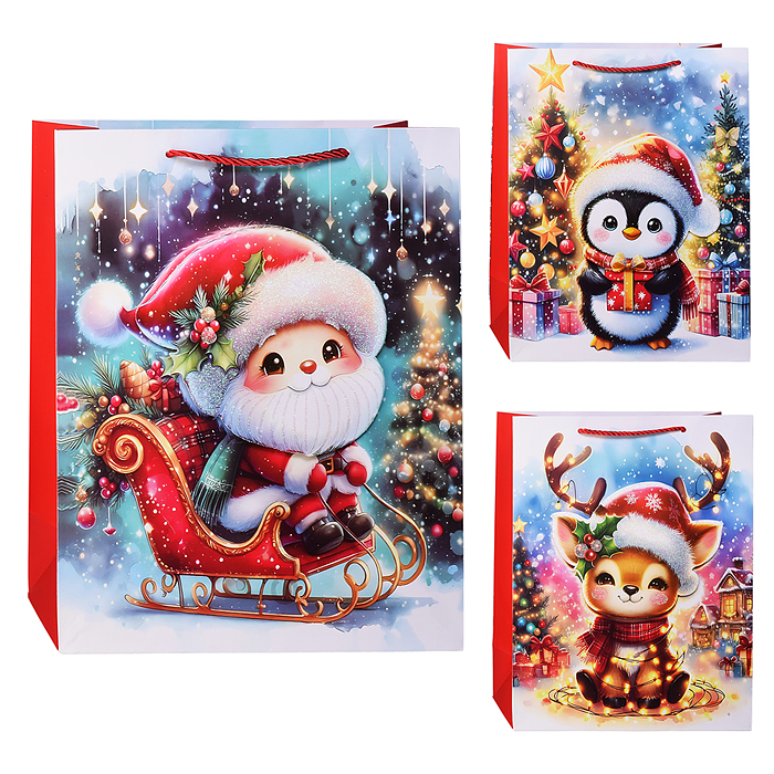 Пакет подарочный с глянц.лам. 26.4*32.7*13.6 см (L)  Чебурашка и снежинки , 157 г