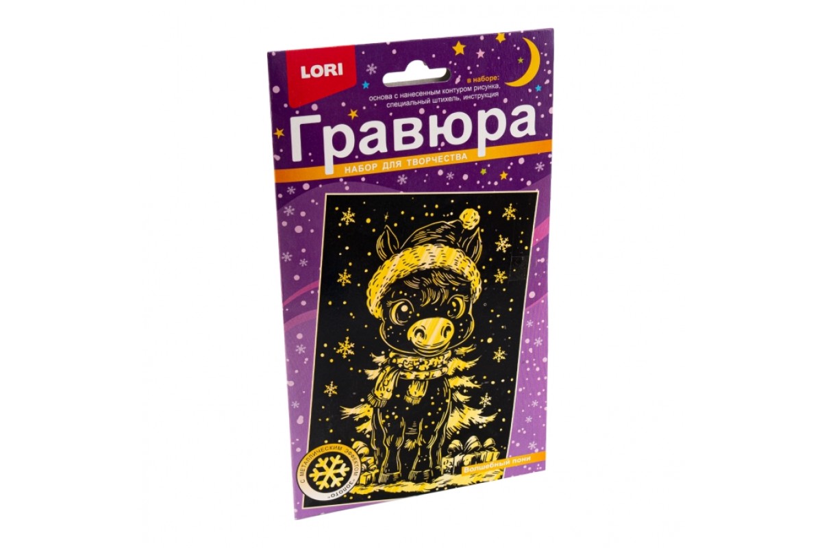 Гравюра малая "Волшебный пони" с эффектом золота новогодняя