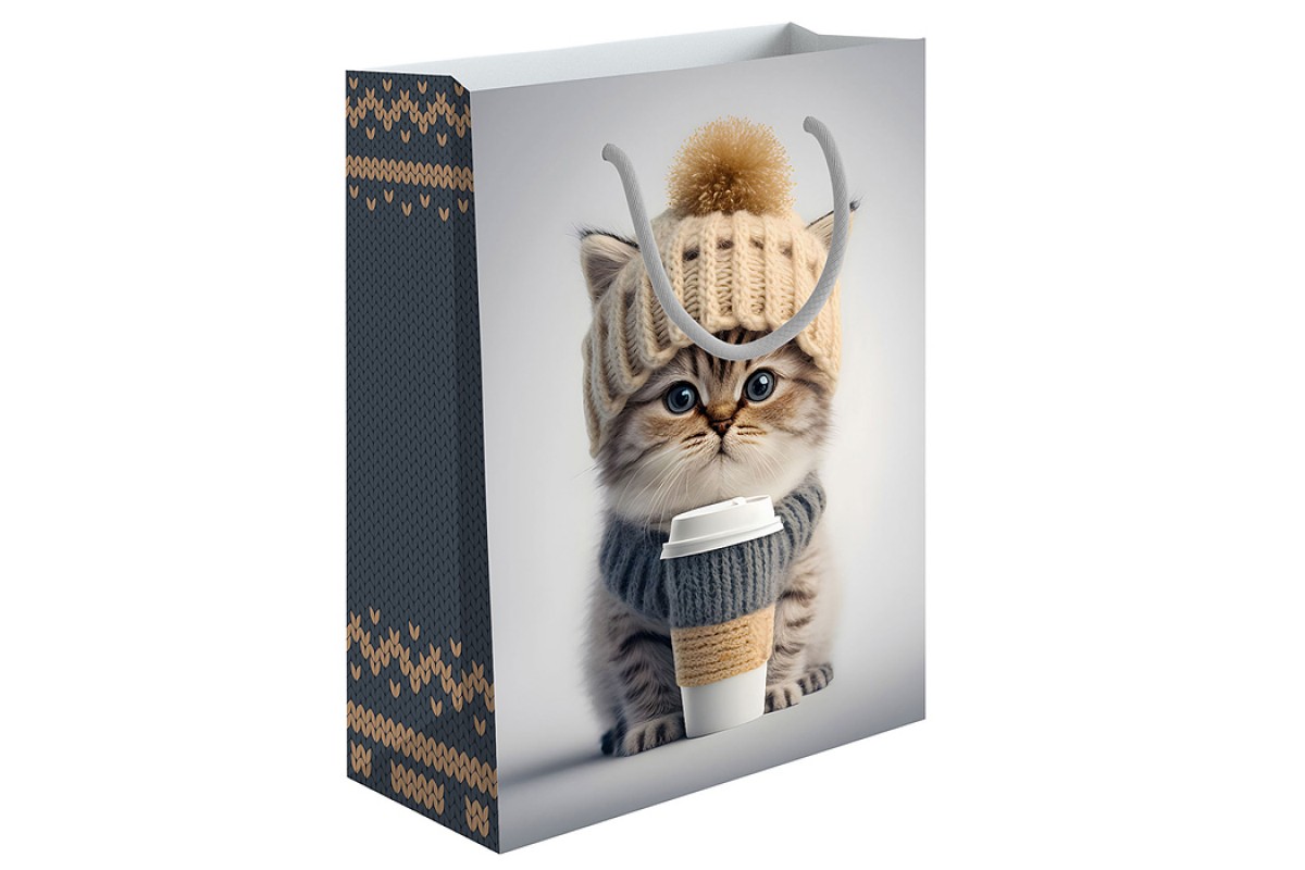 Пакет бумажный подарочный ВС "Пушистый кот" глянец, размер 18x23x10см