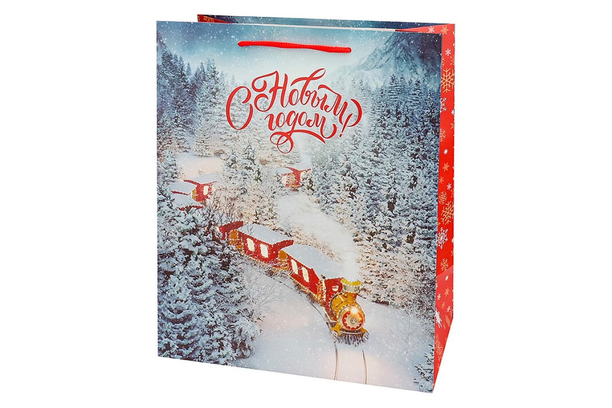 Пакет подарочный 26,4х32,7х13,6 см (L) "Зимний поезд"