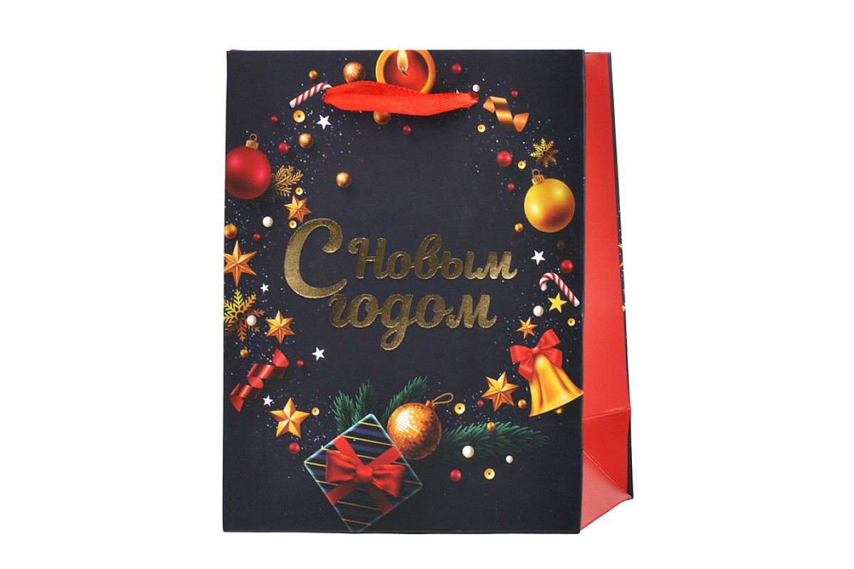 Пакет подарочный новогодний "New Year" 11x6x15 см, Золотая сказка, фольга