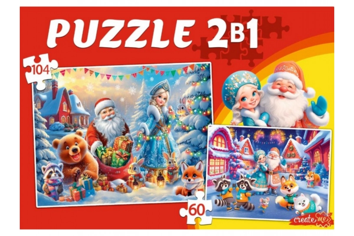 Пазлы 2 в 1. 60 и 104 "Новогодние развлечения"