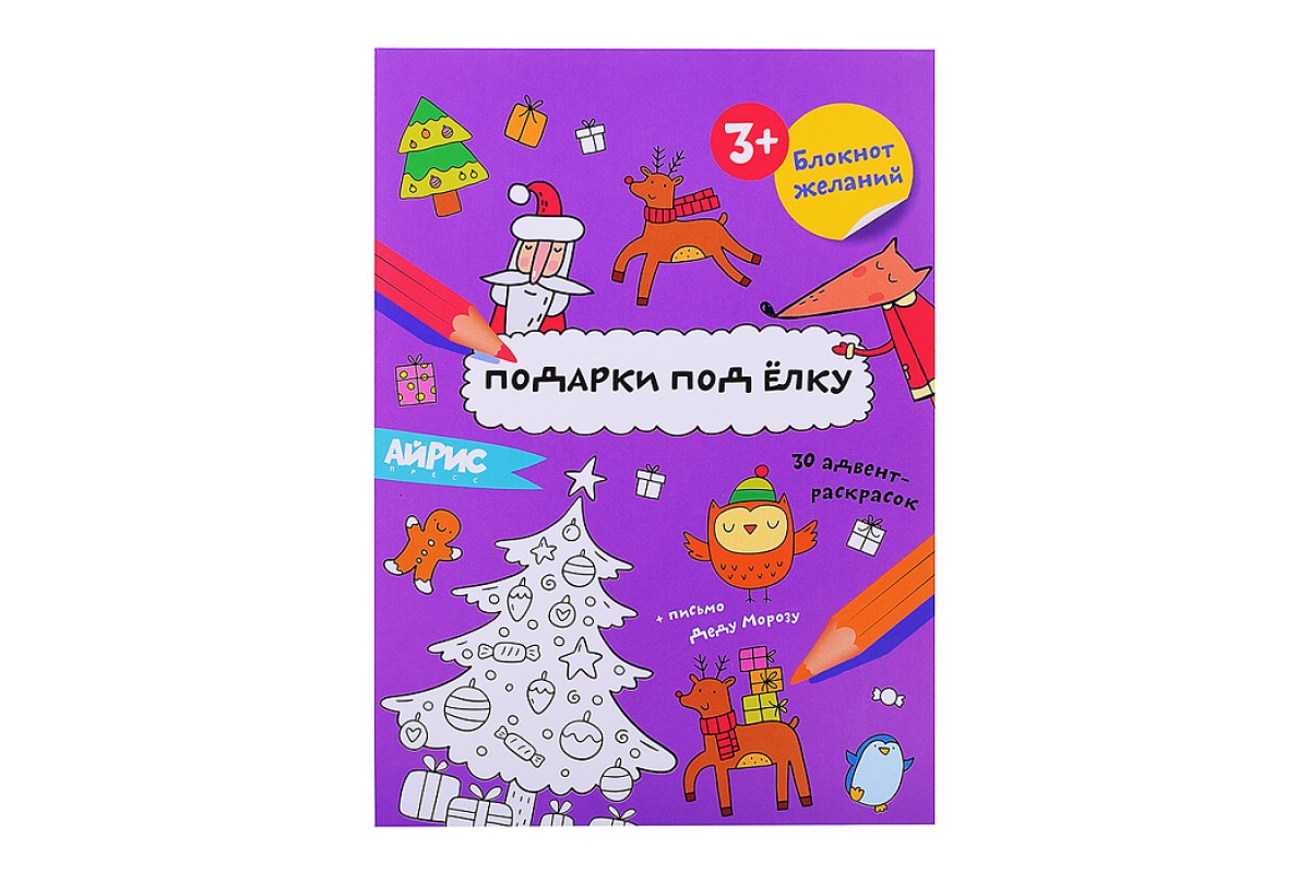 Раскраска новогодняя. Блокнот желаний. Подарки под ёлку 3+