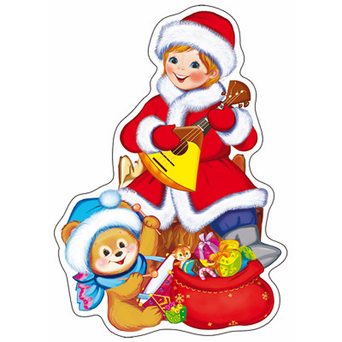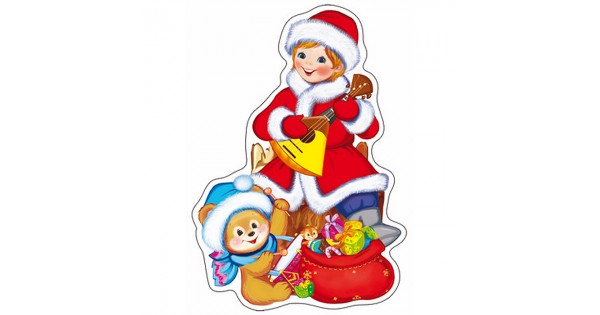 Плакат вырубной А4 "Юный Дед Мороз с подарками" (с блестками в лаке)