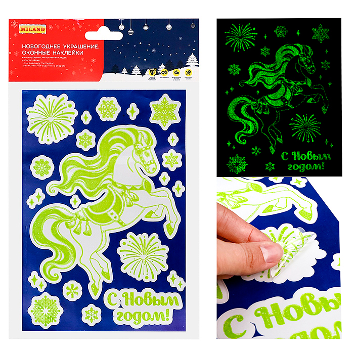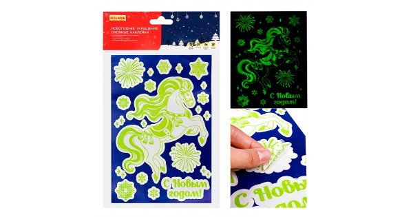 Наклейки оформительские, светящиеся в темноте, с раскраской из ПВХ "Праздничный конь" 21*30см