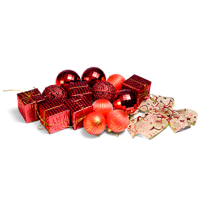 Набор новогодних шаров "Новогодний переполох" красные (6см*16шт)в пакете