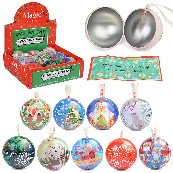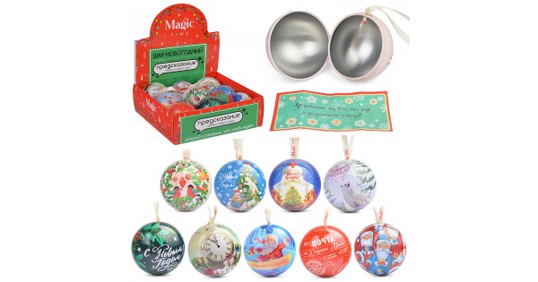 Новогоднее подвесное елочное украшение - Шар Классический c новогодним пожеланием внутри (черный металл)