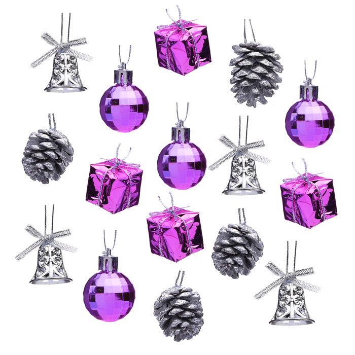 Набор новогодних шаров "Новогодние забавы" белые,нежно-розовые (4см*16шт)