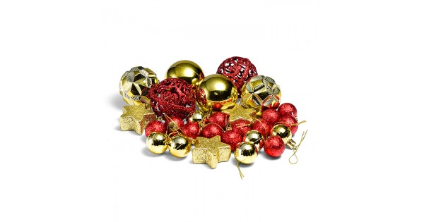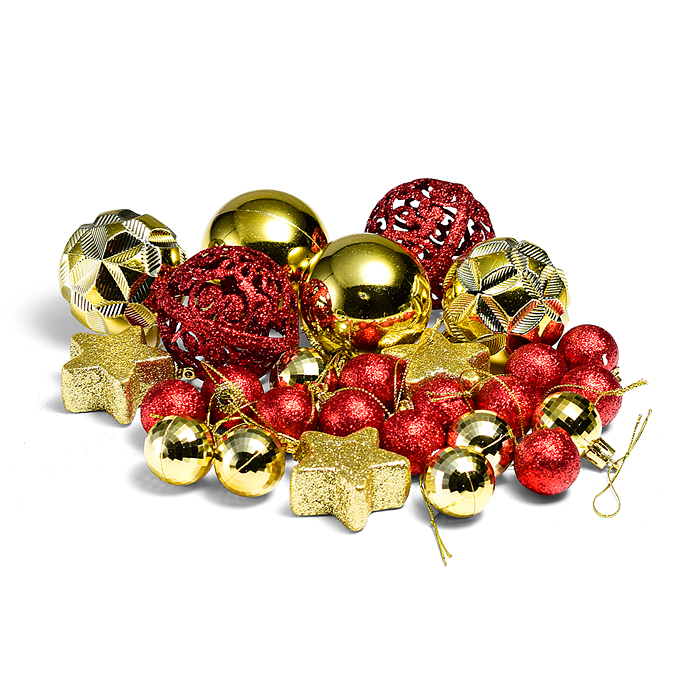 Набор новогодних украшений "Шарики и звездочки" 3-6см*27шт в пакете
