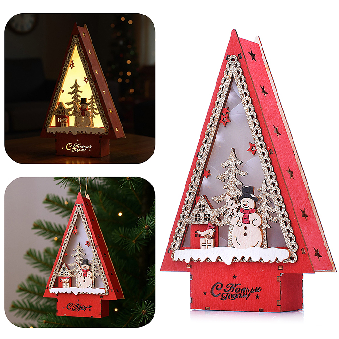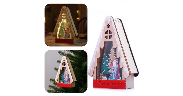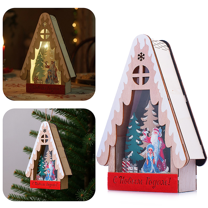 Новогоднее украшение "Домик со светом. Дедушка с подарками" в пакете