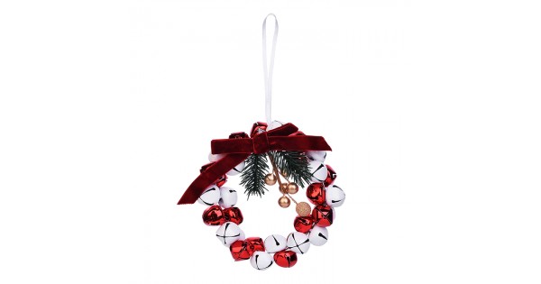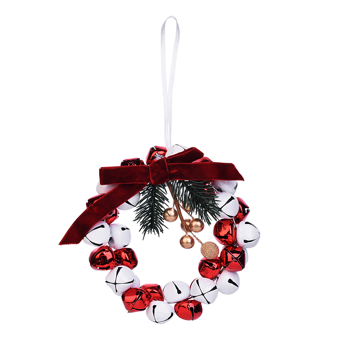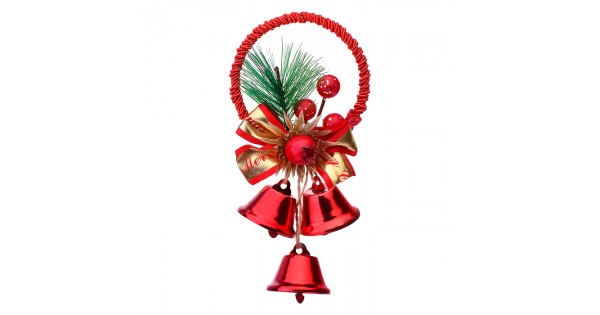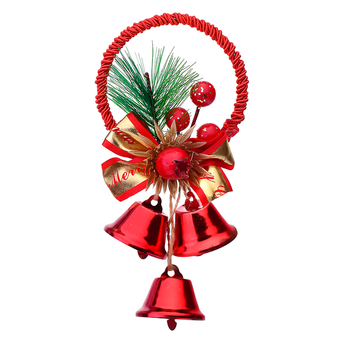 Новогоднее украшение "Колокольчики с ягодами и веточкой на подвесе" (9*16см.)