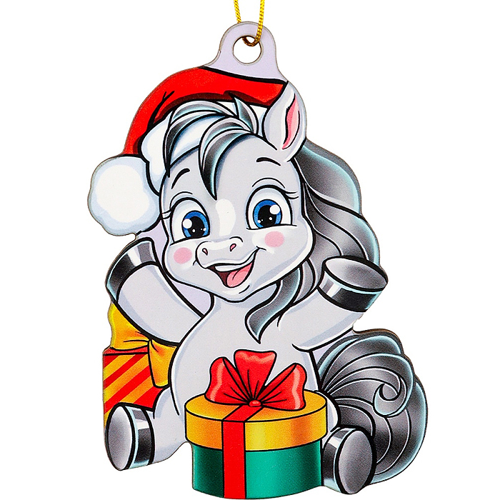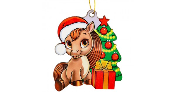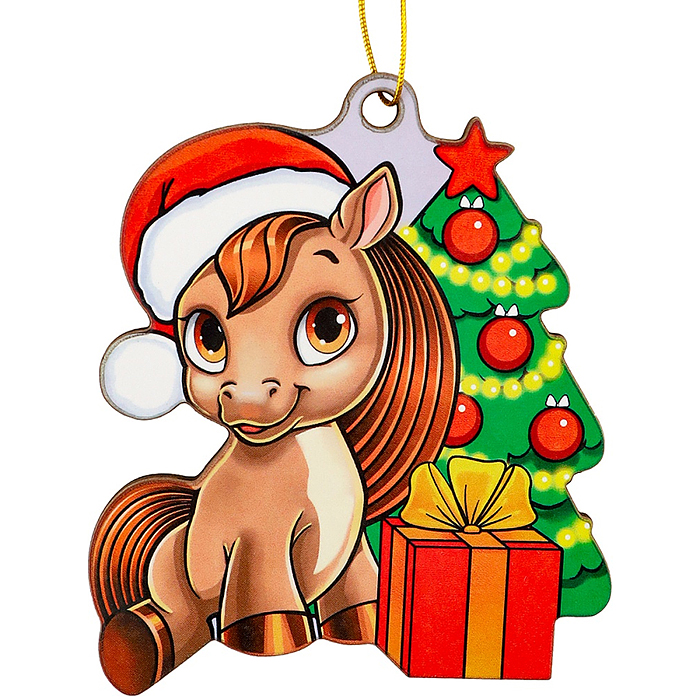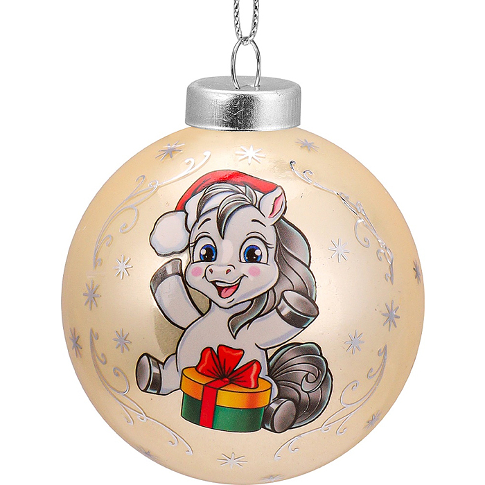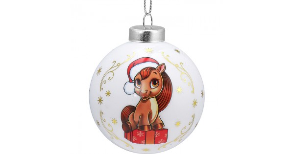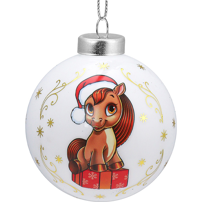 Новогоднее украшение. Елочный стеклянный шар "Праздничный пони", 6 см,