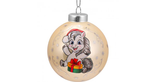 Новогоднее украшение. Елочный стеклянный шар "Счастливая пони", 6 см,