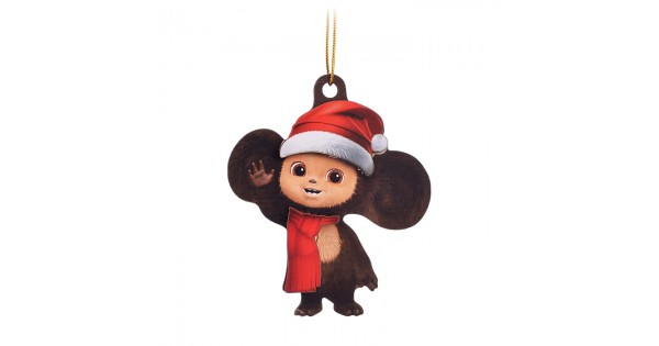 Новогодняя ёлочная подвеска из дерева двухслойная "Чебурашка в шарфике" 9х7,5см
