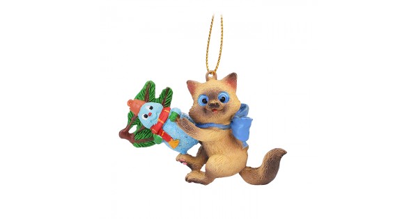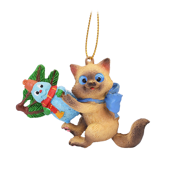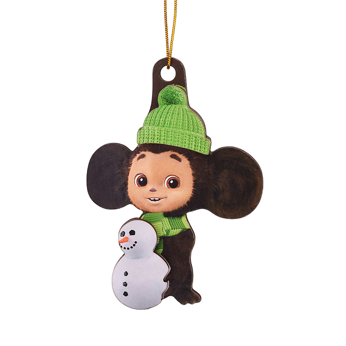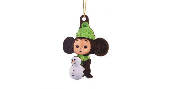 Новогодняя ёлочная подвеска из дерева двухслойная "Чебурашка и снеговик" 9х6,5см