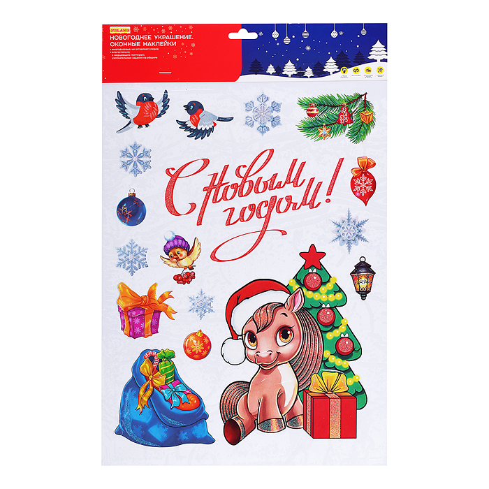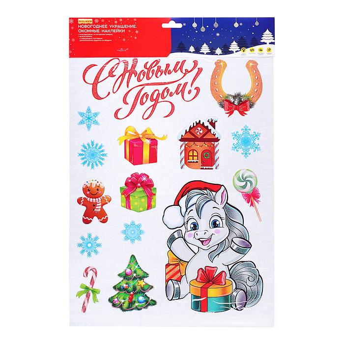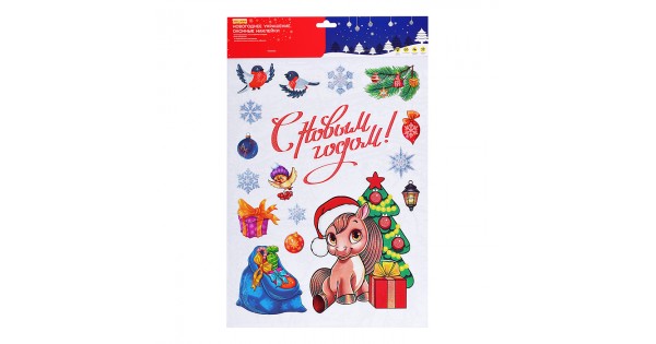 Новогоднее оконное украшение  с раскраской "Милая лошадка", 30х40 см