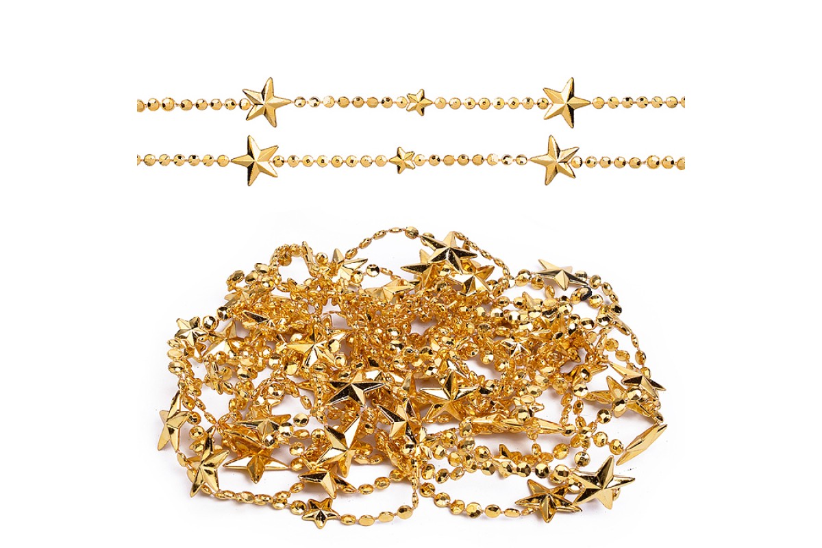 Бусы новогодние "Золотые" со звёздочками (5м)в пакете