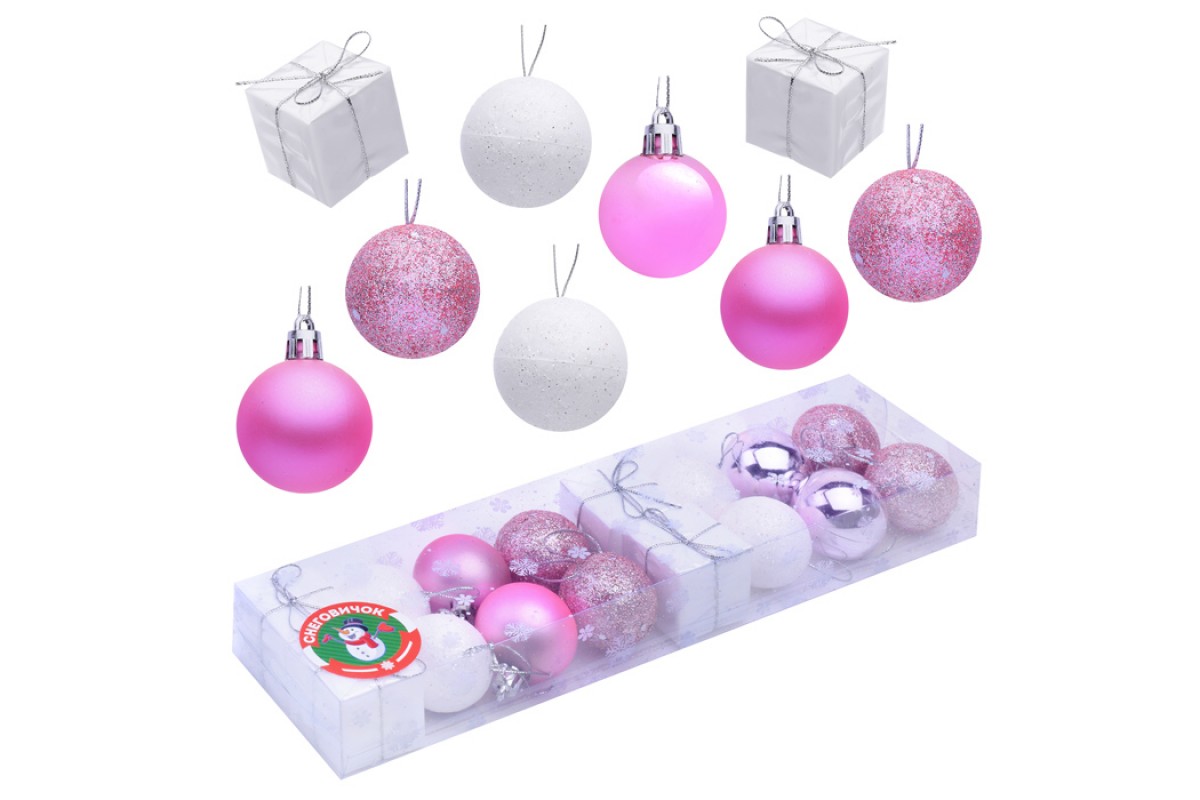 Набор новогодних шаров "Новогодние забавы" белые,нежно-розовые (4см*16шт)