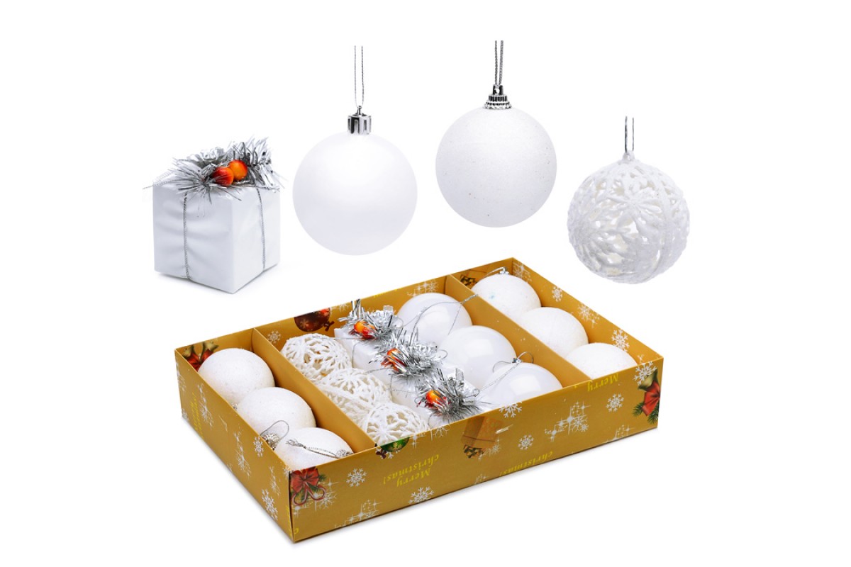 Набор новогодних шаров "Новогодний переполох" белые (6см*15шт)
