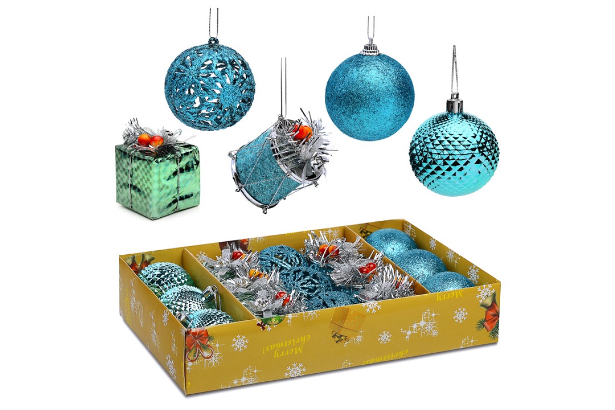Набор новогодних шаров S166 "Новогодний переполох" голубые (6см*15шт)