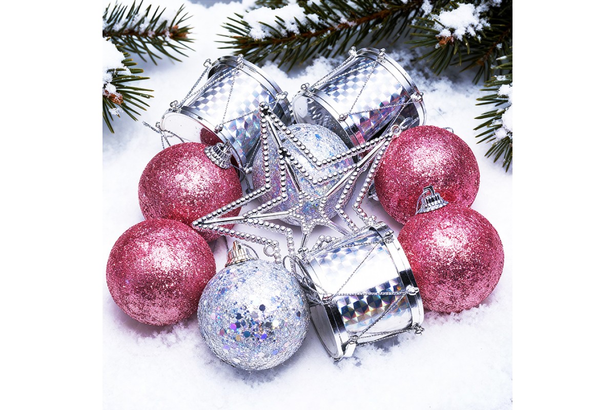 Набор новогодних украшений фиолетовые с блёстками (5см)