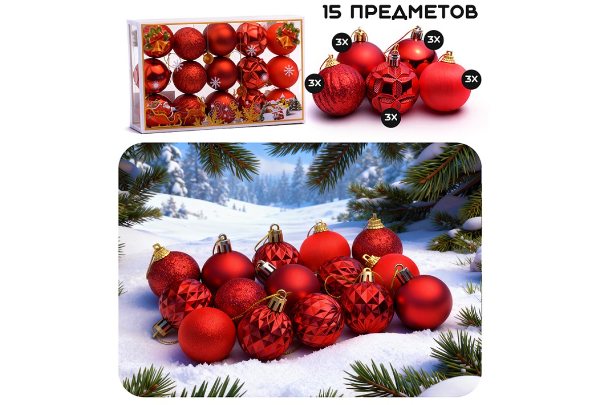 Набор новогодних украшений "Праздничные шарики" (15шт х 5 см)
