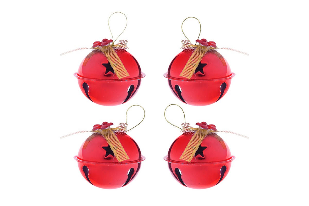 Набор новогодних украшений S1631 "Звездное сияние" красные (5см.*4шт.)