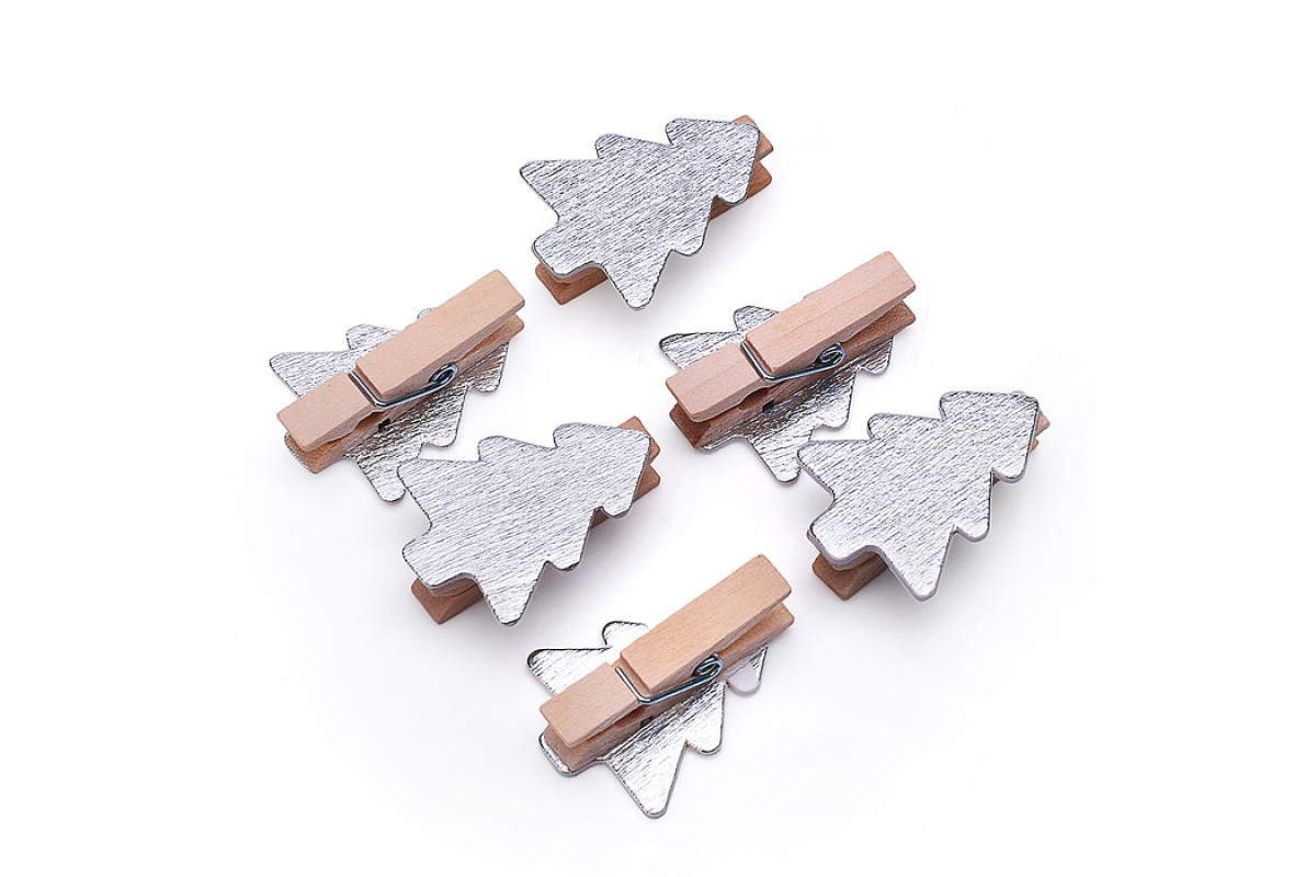 Набор новогодних украшений "Серебряные ёлочки" (6шт х 4см)