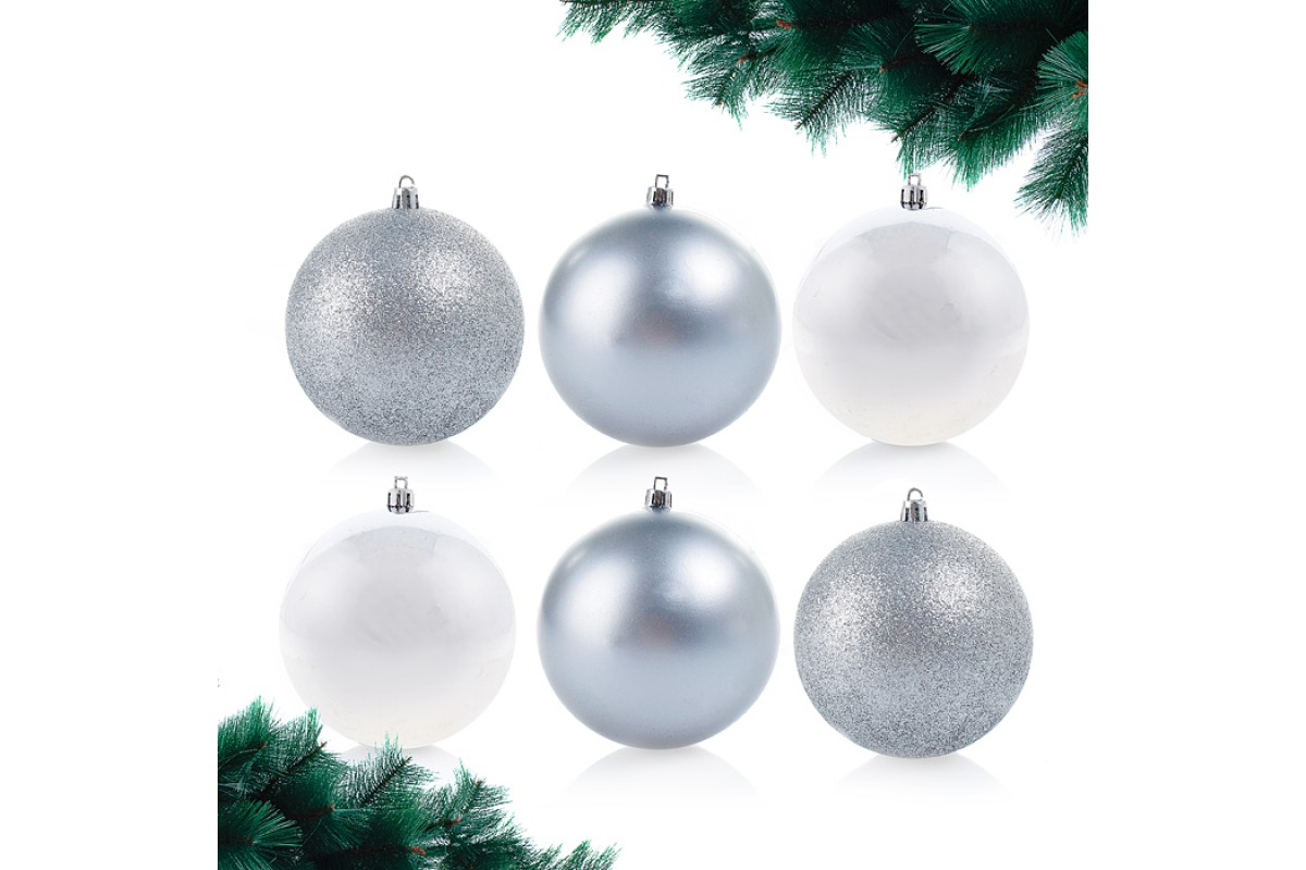 Набор новогодних украшений "Шары" (6шт.,6см,) серебро, в коробке
