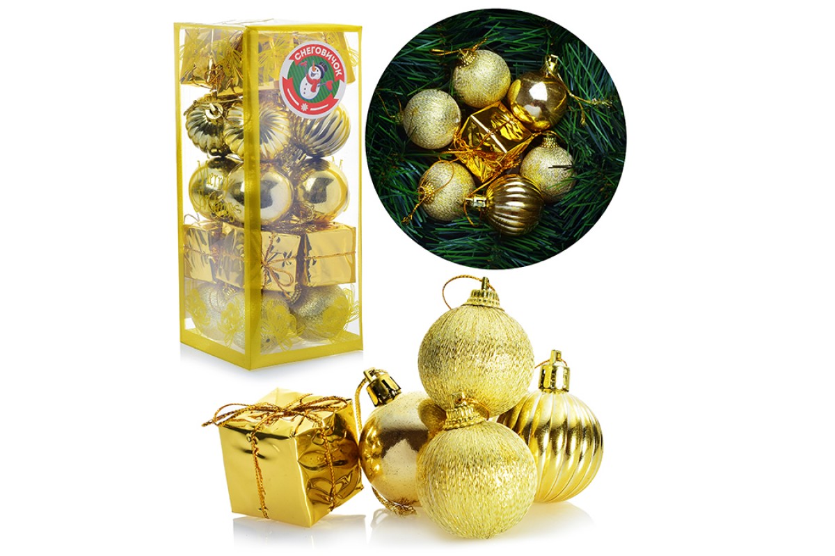 Набор новогодних украшений "Сияние" золото (20шт) в коробке