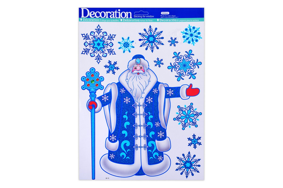 Наклейка новогодняя для декора "Дедушка мороз и снежинки"