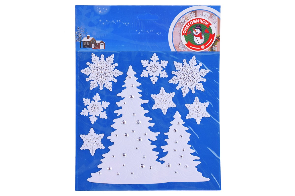 Наклейка новогодняя для декора "Елочки и снежинки" белые