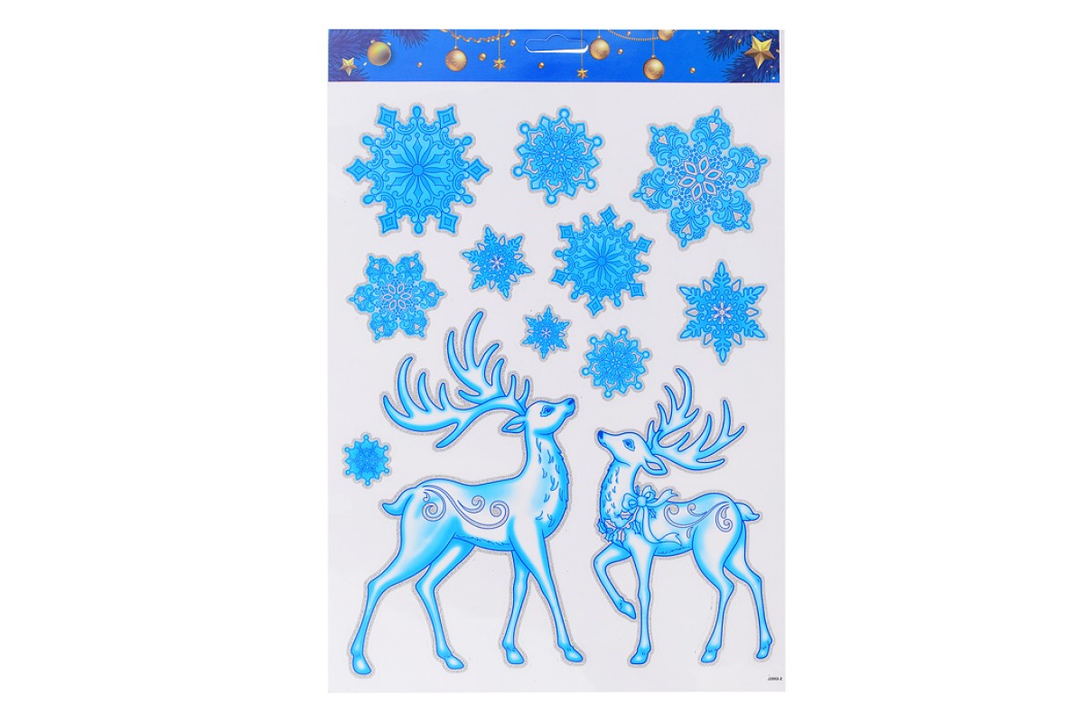 Наклейка новогодняя для декора "Олени со снежинками" голубые