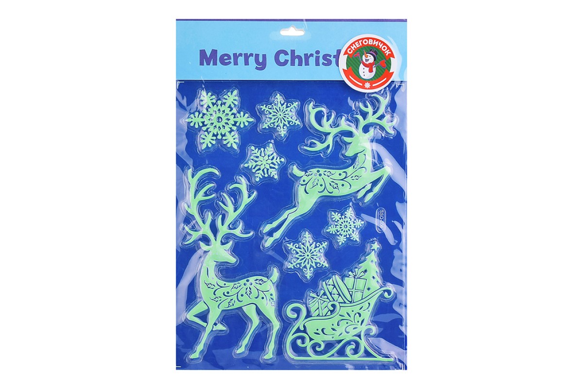 Наклейка новогодняя для декора "Олени" светятся в темноте