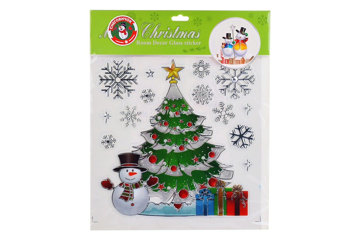 Наклейки новогодние для декора "Елочка с подарками" в пакете