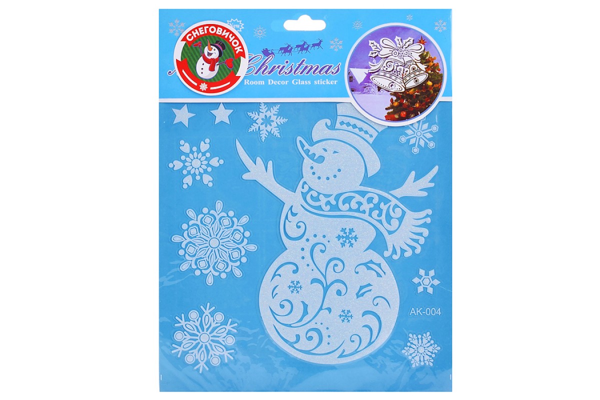 Наклейки новогодние для декора "Новогодний снеговик" в пакете