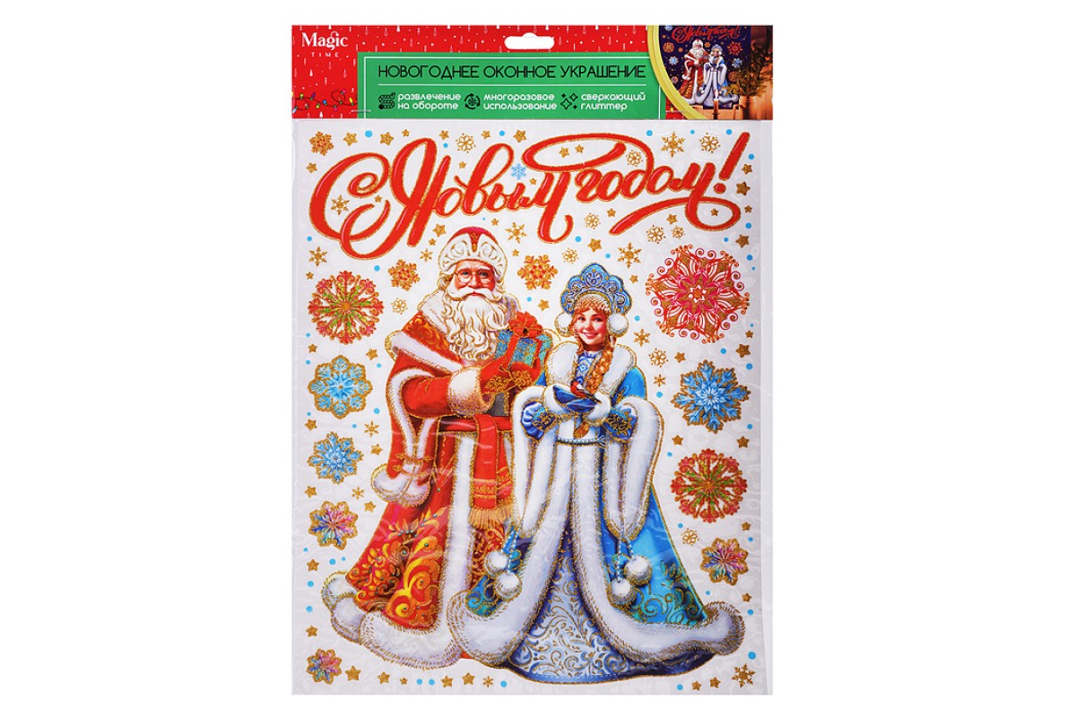 Новогоднее оконное украшение из ПВХ пленки, декорировано глиттером