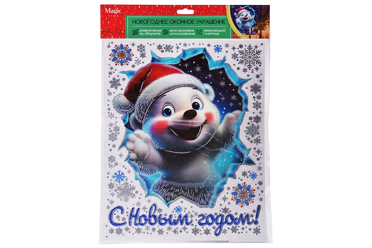 Новогоднее оконное украшение из ПВХ пленки, декорировано глиттером