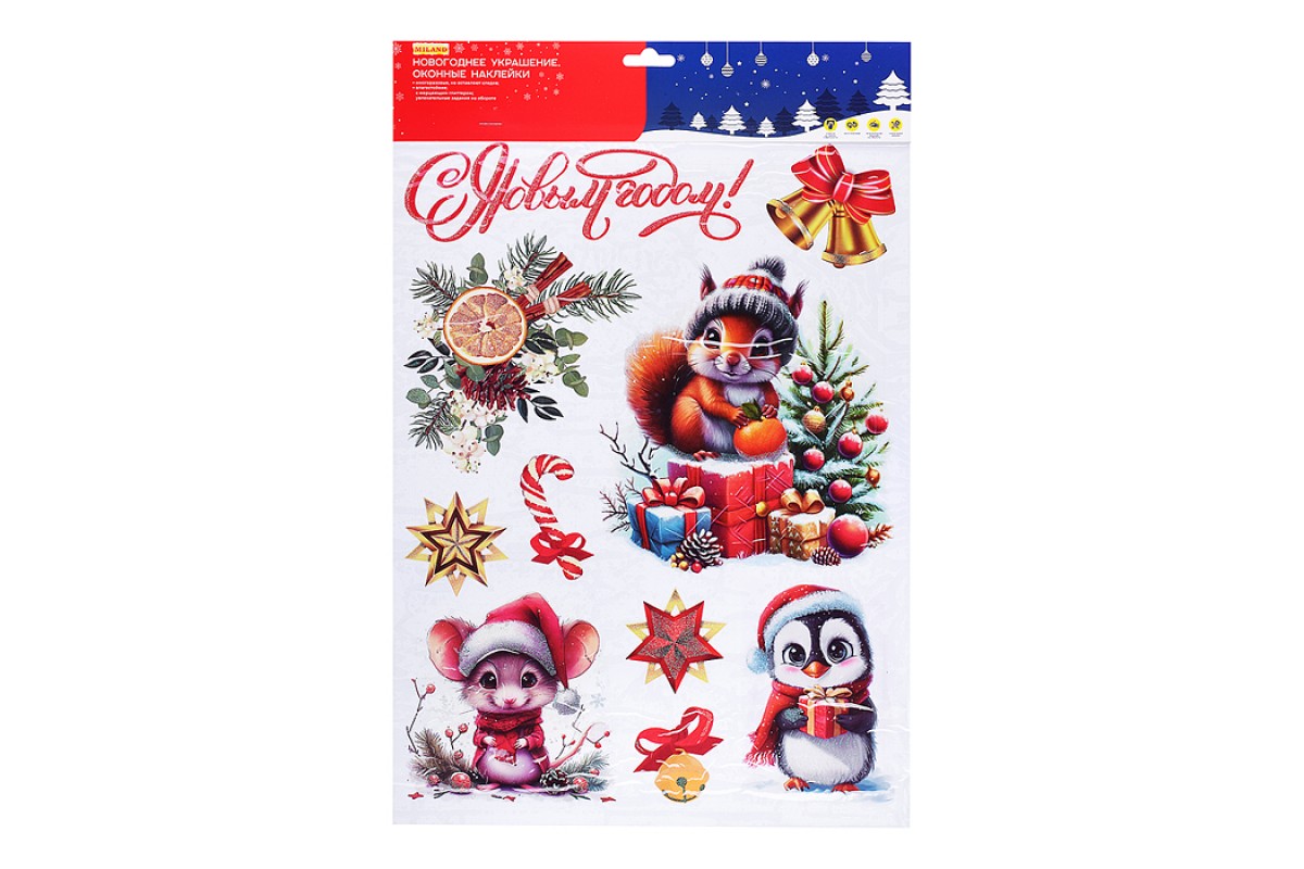 Новогоднее оконное украшение с раскраской. "Милые животные", 30х40 см