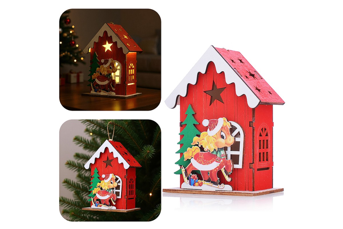 Новогоднее украшение "Домик со светом. Лошадка" в пакете