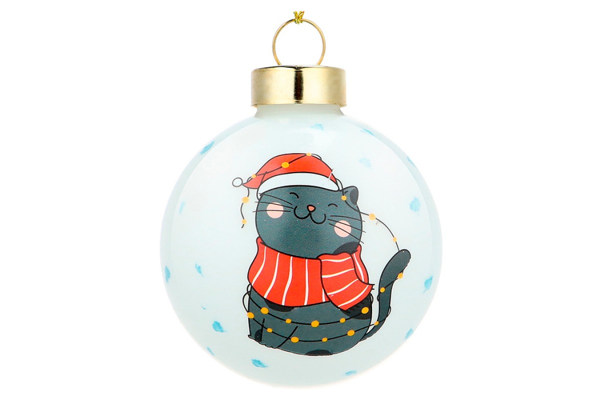 Новогоднее украшение. Елочный стеклянный шар "Серый котик" 6см
