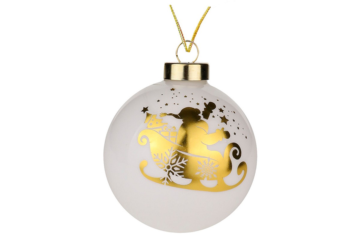 Новогоднее украшение. Елочный стеклянный шар "Золотистые сани" 8см