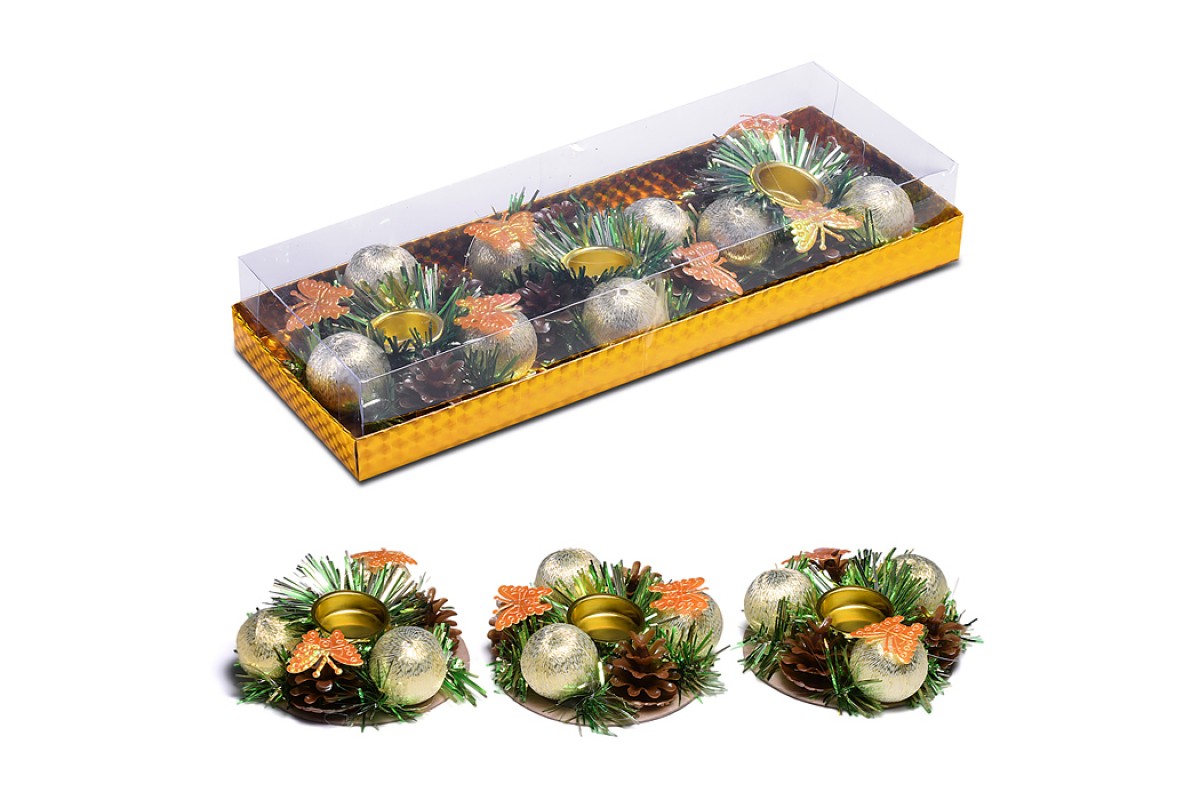 Новогоднее украшение "Подсвечник. Волшебная зима" (3шт х 8 см)