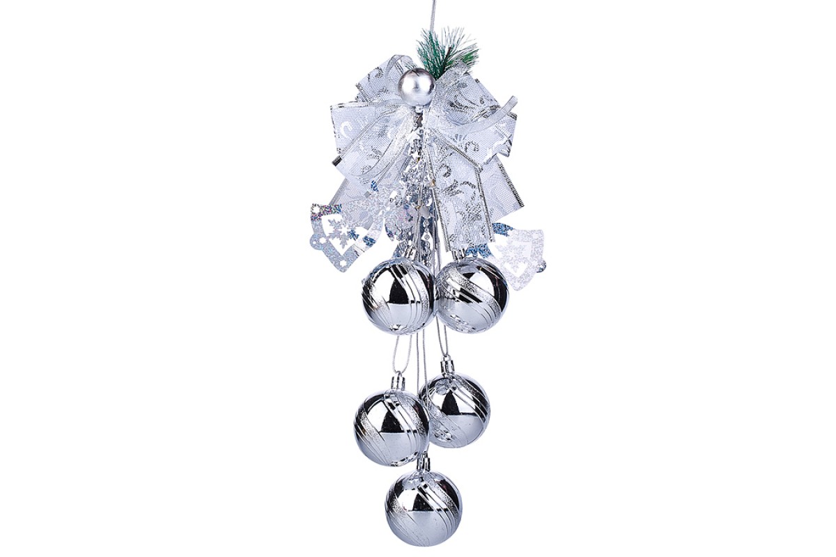 Новогоднее украшение "Праздничный бант" с колокольчиками, серебро