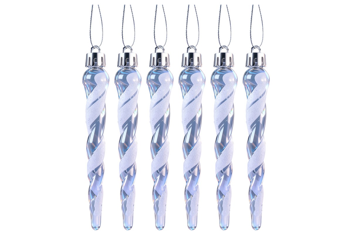 Новогоднее украшение "Сосульки" белые (6шт х 11см)в пакете