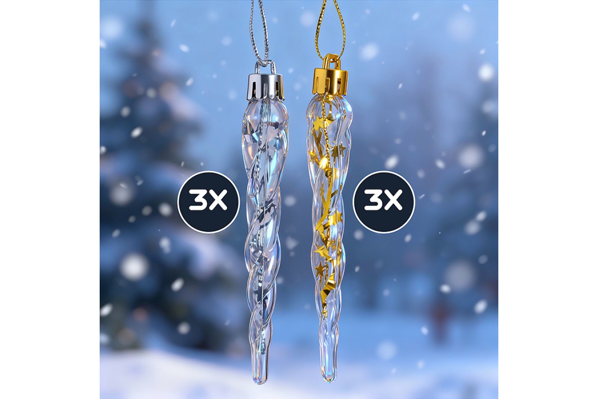 Новогоднее украшение "Сосульки" (золото/серебро, 6шт х 11см)