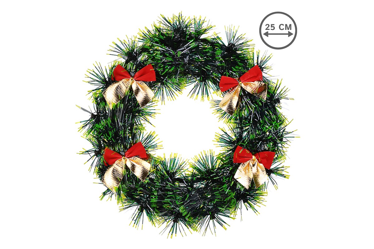 Новогоднее украшение "Венок Рождественский" с бантиками, 25 см.
