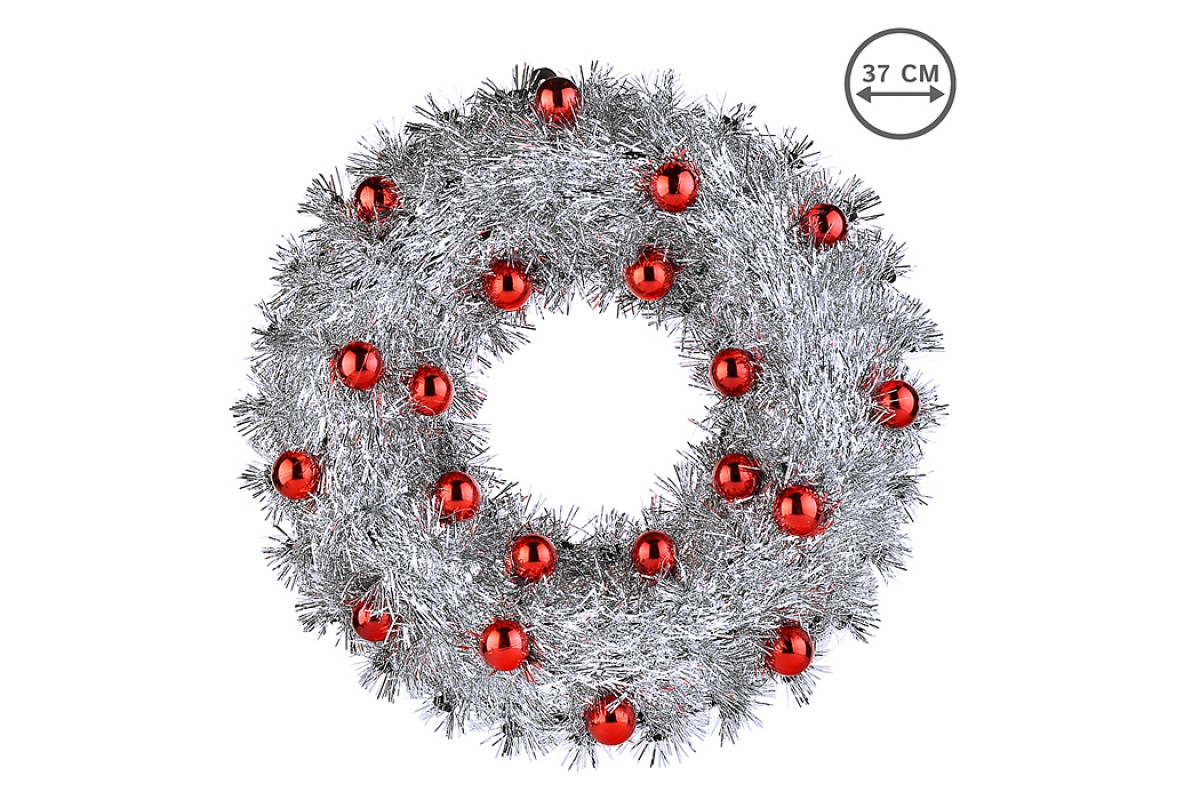 Новогоднее украшение "Венок Рождественский" серебристый с шариками, 30 см.